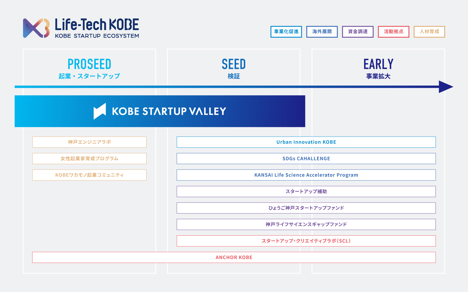 神戸市では、スタートアップエコシステムの構築を目指し、さまざまなスタートアップ支援事業に取り組んでいます。